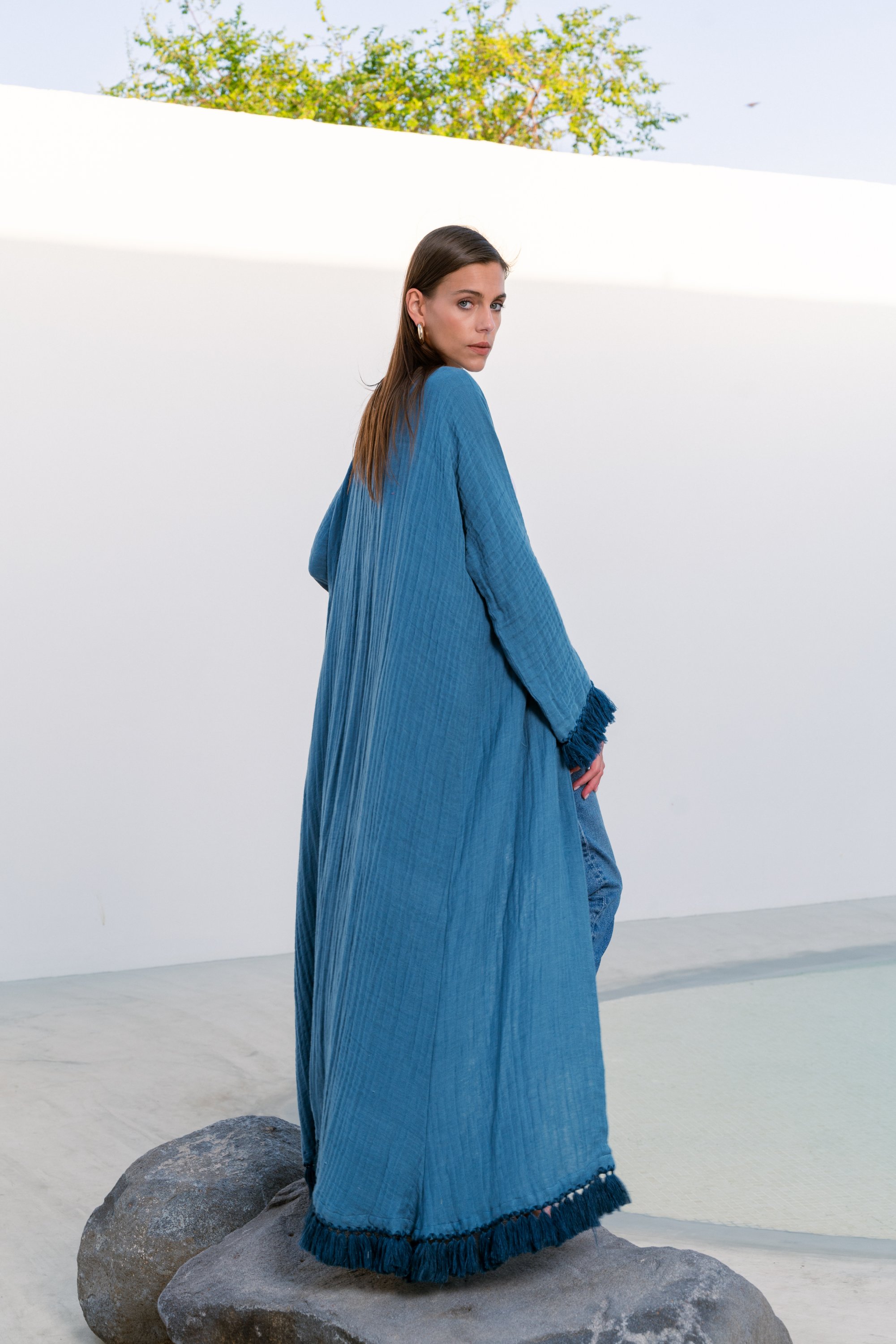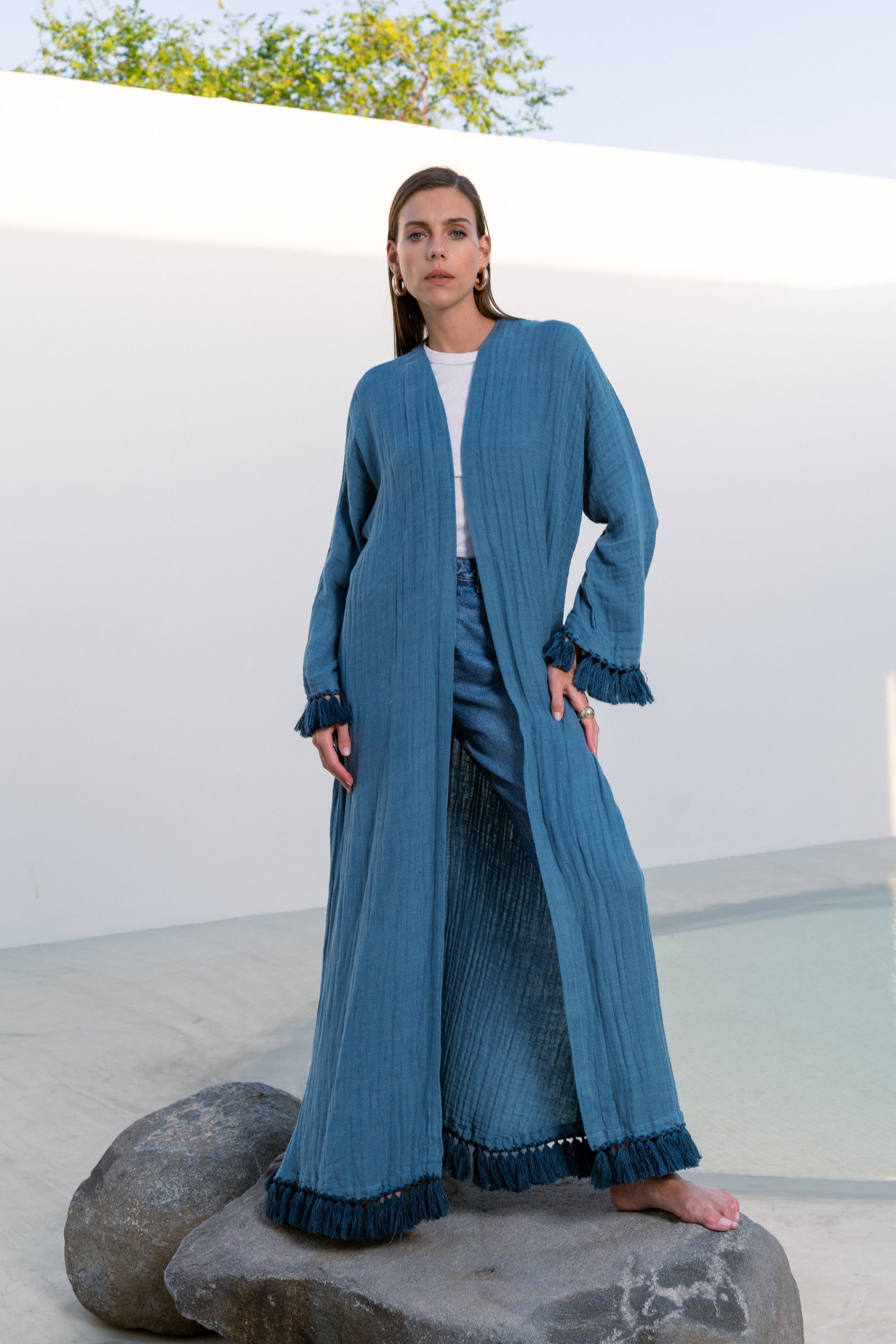 blue tassel abaya